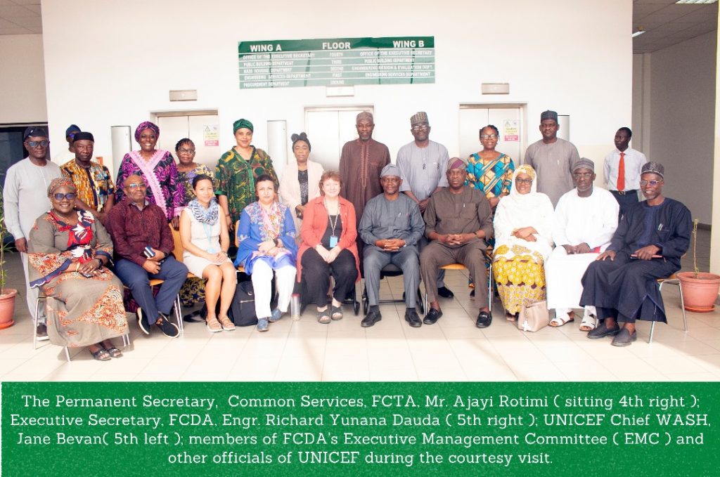 The Executive Secretary who gave the assurance when a team from UNICEF paid him a courtesy visit on Tuesday, described the WASH project in the FCT as an interesting one,saying that in the midst a sprawling Capital City, there are many local communities that would require their services. “We assure you that we will give you our support. Our Planners cover every inch of the FCT. Whatever information you need about planning, we will give you. We also have our technical team. Whatever support you need, we will provide “, he told his visitors.